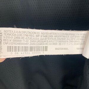 Men’s bomber jacket by Zara, black two tone polyester. Zip front. Mock turtle neck collar. Cuffed hem and sleeves. One zip pocket on the sleeve. Front pockets.