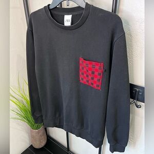 Zara Men’s pullover sweatshirt black buffalo plaid pocket size medium