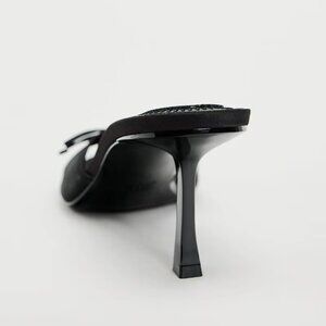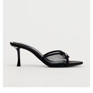 Zara Mesh Bow Kitten Heel Sandals in Black, Size 6 (36), New