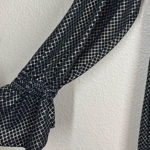 🖤💙 Zara Metallic Blue Silver & Black Bell Sleeve Party Dress NWT