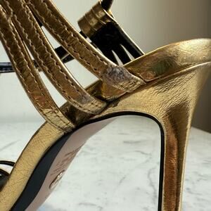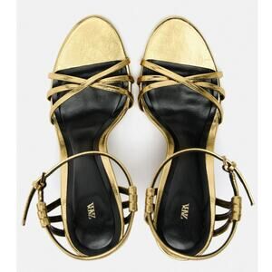 Zara Metallic Gold Strappy Heels Glam Night Out Size 39 4.5" Heel