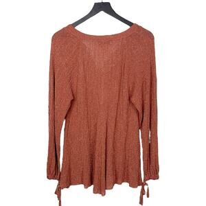 Zara Metallic Long Sleeve Tie Front Top Size M Copper
