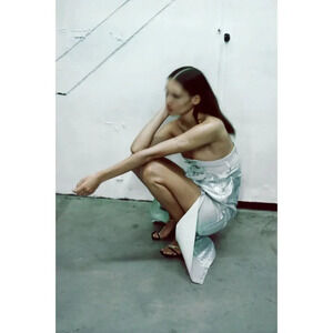 Zara Metallic Midi Skirt with slit Size Medium NWT