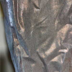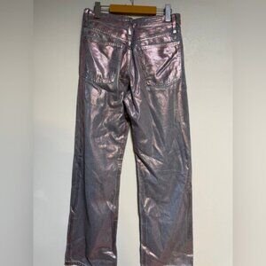 Keywords: Zara metallic jeans, pink coated denim, shiny jeans, straight leg, Y2K metallic pants