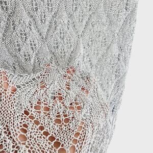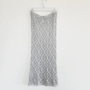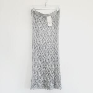 Zara Metallic Silver Open Knit Embroidered Mesh Skirt Midi / Maxi Size Large