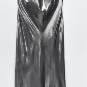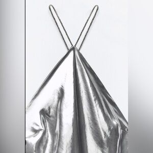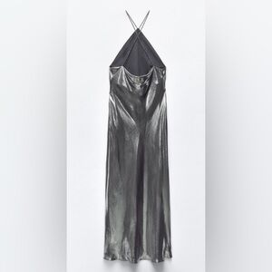 Zara Metallic silver, sparkly rhinestone strap maxi dress. Size small Lined. Criss cross straps in back. 100% polyester Approx 54” long from top of neckline