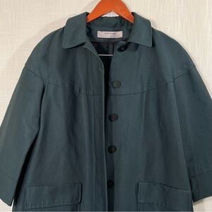 Zara Mid Length Green Oversized Button Trench Coat Jacket Size S