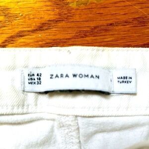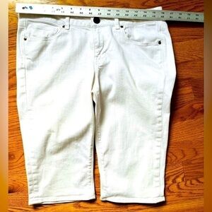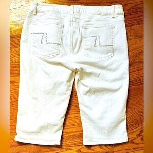 Mid Rise Zara Capris White Denim Jeans with clear crystals within back pockets.