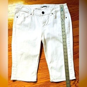 Mid Rise Zara Capris White Denim Jeans with clear crystals within back pockets.