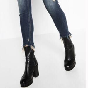 Zara Mid Rise Frayed Skinny Jeans size 6 in excellent condition. Measurements laying flat are waist 14 1/2 inches across and inseam 26 inches long and rise 9 inches