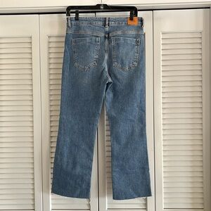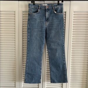 New without tags, these Zara jeans are a perfect mix of comfy and stylish. The ankle crop style (6147/121/427) is a nice mid blue color with a raw hem and wears well over time. Pair it with a t-shirt or cropped sweater. Excellent condition. Women’s size 10.