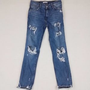 Zara Mid Rise Skinny Jeans Size 2 in Light Wash Denim w/ Distressing