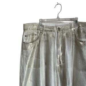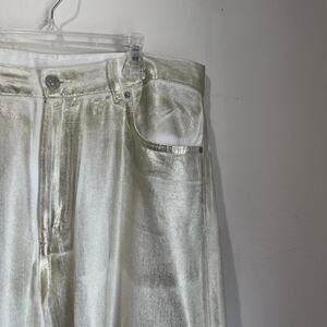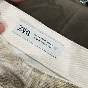 Zara Mid Waist Loose Gold Metallic Foil Wide Leg Jeans 5520/003 Size 12