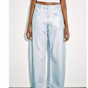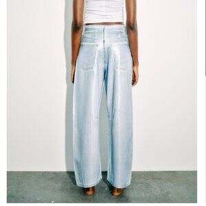 Zara - Mid Waist Pastel Blue Foil Baggy Balloon Jean Pants