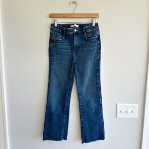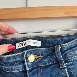 Zara Mid-Rise Raw Hem Straight Leg Jeans Medium Wash 4