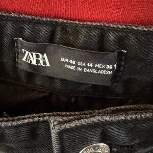 Zara Mid-Rise TRF Cargo Pants Denim Black Wide Leg Jeans Womens US Size 14 EU 46