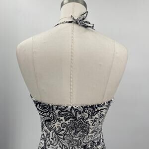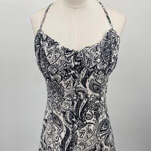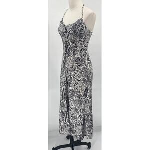 Zara Midi Dress Paisley Printed Halter Neck Button Down Black & White Womens XS