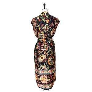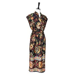 Zara Midi Dress V Neck Button Top Pockets Tie Waist Black Floral Satin Size XS