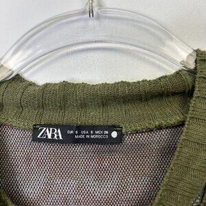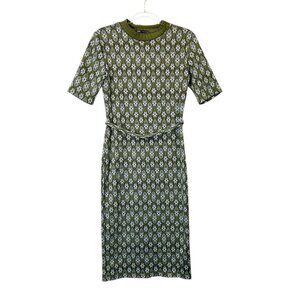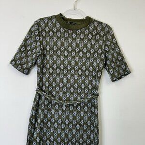 Zara Midi Dress Women’s Size Small Green Floral Knit Belted
