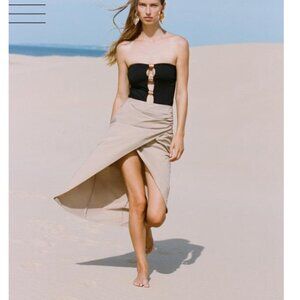 Zara Midi with Side Slit and Asymmetrical Ruching Skirt Size M NWT