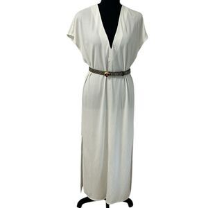 Zara Midi Off-White V-neck Stretchy Dress,Pull on styling,Side slit,BELT NOT INCLUDED.Approx measurement Pit to Pit 20”,Length 48”,Worn once,EUC