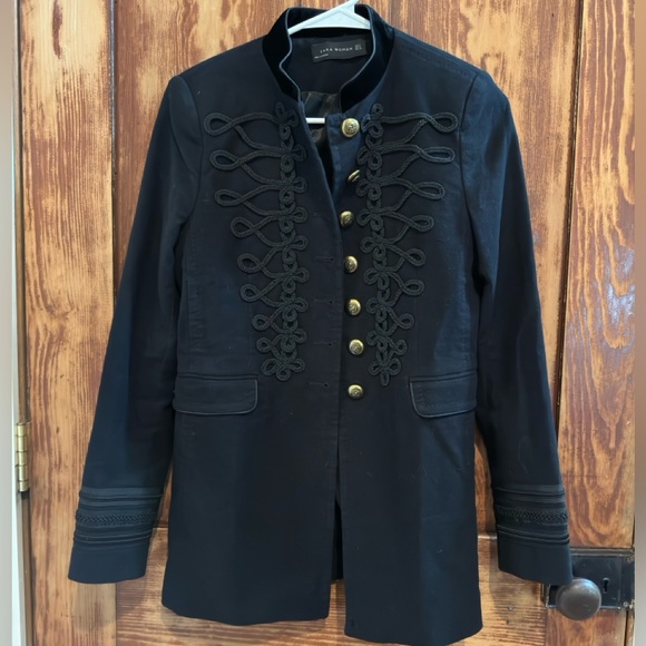 Zara military jacket. Navy. Size small. Worn a handful of times. No flaws. The neckline and boarder is a velvety material which makes it pop.