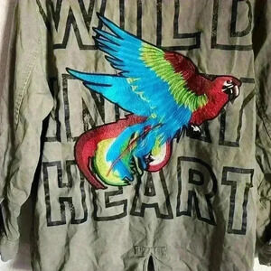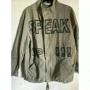 Zara Military Speak Up Trench Motor Biker Graphic Bird Olive Green Jacket XS