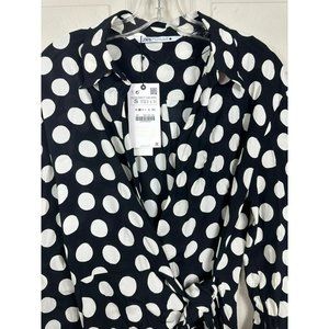 Zara Mini Black and White Polka Dot Pareo Wrap Collared V-Neck Dress Small