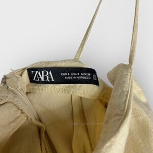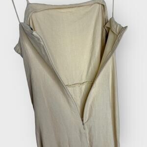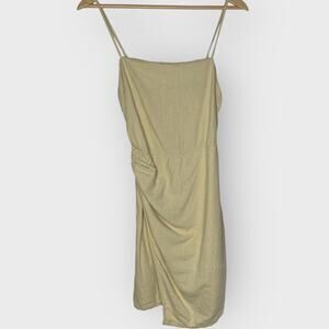 Zara Mini Draped Dress Spaghetti Strap Ruched Slit Linen Goddess Style Cream W S