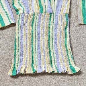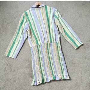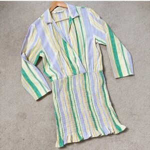 Zara Mini Dress Shirred Skirt Pastel Stripe Long Sleeve Cotton Mini Dress Large