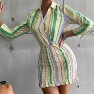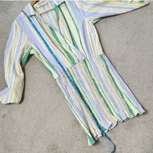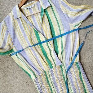 Style Tags: Zara Mini dress shirred skirt pastel stripe Valery dress size large mini dress ZARA