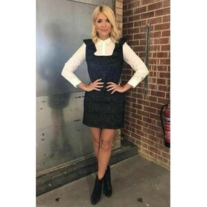 Zara Mini Dress White Button Blouse Shirt Tweed Pinafore Academia Cosplay Grey S