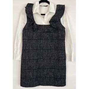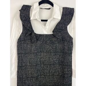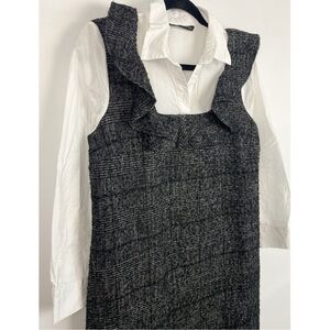 Zara White Button Blouse Shirt Tweed Pinafore Mini Dress Academia Pilgrim Grey Black - Size S