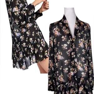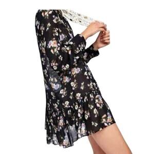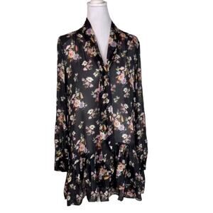 Zara Mini Dress Womens Size XS Black Floral Flowy Chiffon Romantic Feminine Boho
