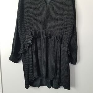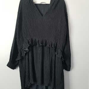 Zara Mini Ruffle Black Polka Dot Dress size XS