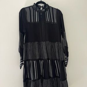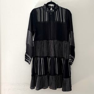 Zara S Ruffles Mini dress Polyester Flowy Button around neck (back) loose- pictured