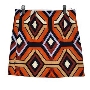 Zara Mini Skirt Size Small Orange Brown Geo Pattern Retro 60s Inspired Mod