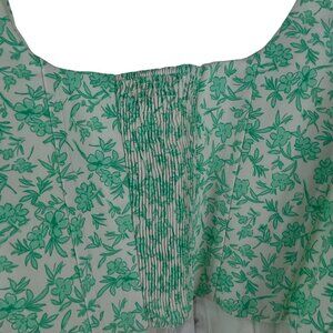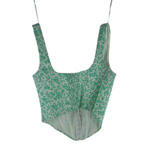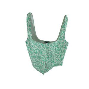 Zara Mint Green Floral Poplin Corset Top Sz M Cotton Blend Smocked Cropped
