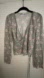 Chic Zara wrap blouse with floral pattern. Features a tie waist and scalloped hem.