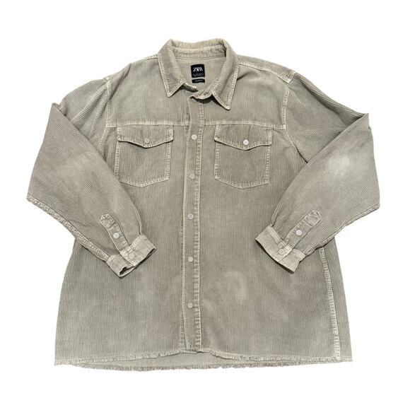 Zara Mint Green Women Corduroy Button Up Shacket Large Overized Fall Chic Casual