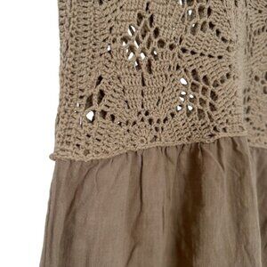 Zara Mixed Macrame Crochet Knit Earth Brown Cotton Midi Dress Size S