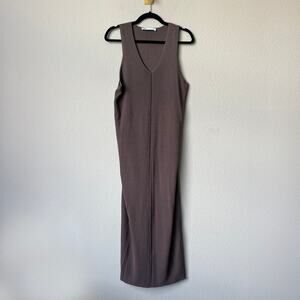 Zara Mocha Brown Sleeveless Knit VNeck Column Maxi Dress Size S