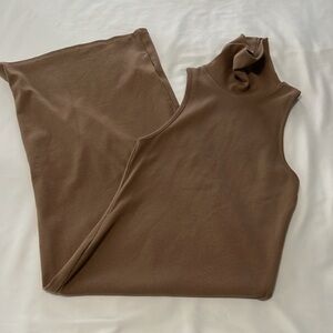 Zara Mocha Sleeveless Turtleneck Ribbed Bodycon Tank Dress