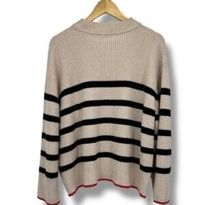 Zara Mock Neck Striped Oversized Rib-knit Sweater Women's M Cream Black
