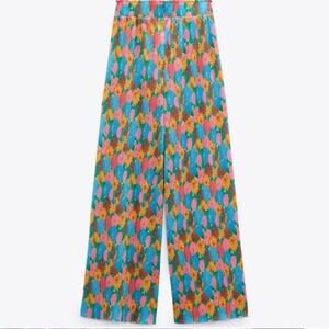Zara Mod Retro Floral Wide Leg Palazzo Pants size small Pink Green Yellow
