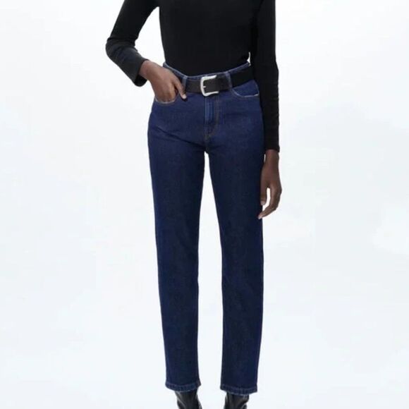 Zara Mom Fit High Rise Slim Ankle Jeans Dark Wash Blue Women's Size US 0 EU 32