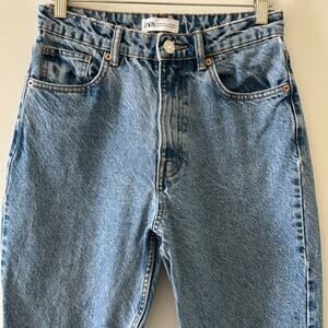 Zara Mom Jeans High Waisted Blue 100% Cotton Size 4