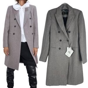 NEW Zara Monteco Wool Blend Double Breasted Coat Ash Brown