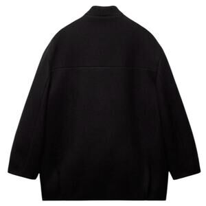 NEW Zara Monteco Wool Front Zip Oversized Bomber Jacket Black Size XS