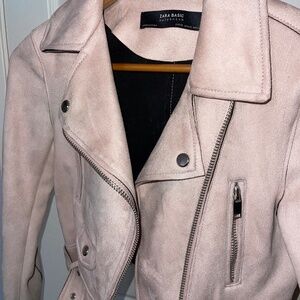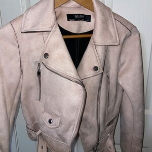 Zara Moto Jacket Faux Suede Light Pink Women Size XS